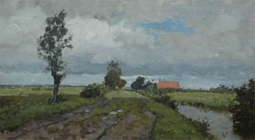 The painting to the left is by Willem Bastiaan Tholen (1860-1931), dated 1921. It's named "Landschap bij Kampen" (Landscape near Kampen), 29.5 x 53 cm. The painting to the right is by