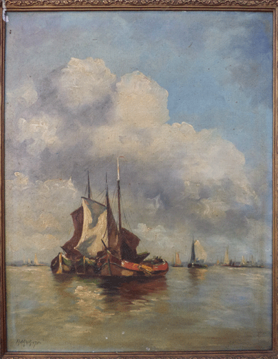 Dit schilderij (40x50) is afkomstig van Apeldoornse oom en tante van mijn informant. Ze woonden voor de oorlog in Apeldoorn. Ik heb het gedateerd op 1935.