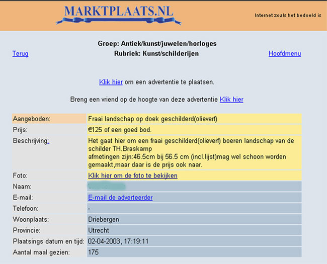 Th Braskamp-schilderij het ontdekte op marktplaats.nl.