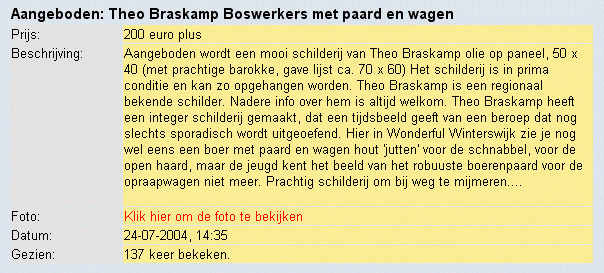 Dit schilderij (50 x 40) is in 2004 geadverteerd op